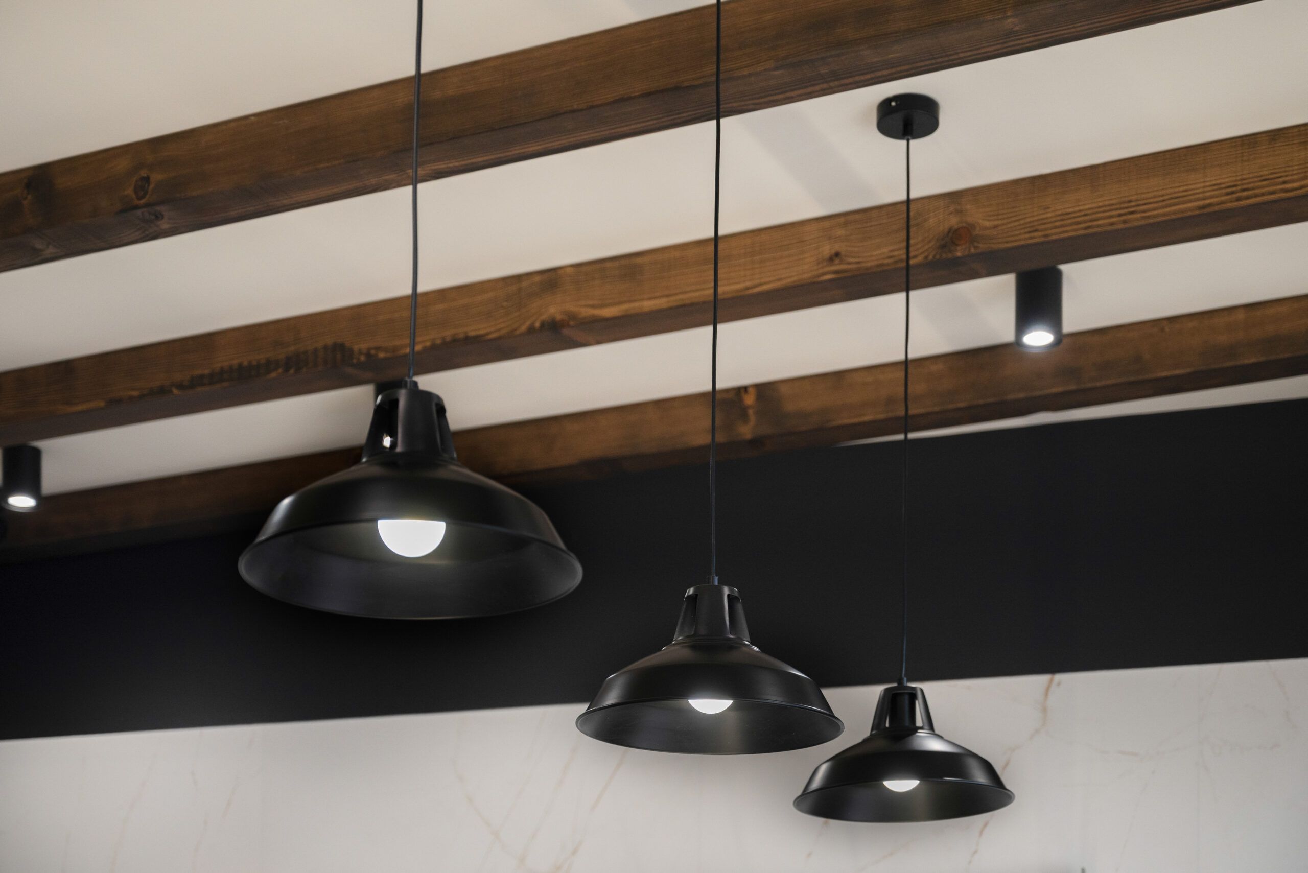 Ο φωτισμός – με γραμμικά και κρεμαστά φωτιστικά – σχεδιάστηκε ώστε να αναδεικνύει τα υλικά και να δημιουργεί ζεστή, φιλόξενη ατμόσφαιρα.
